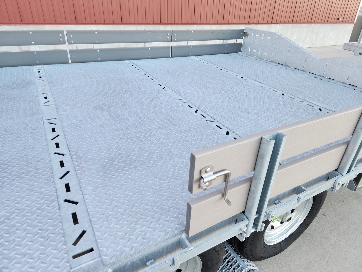 Streamline your pole and material hauling with our specialized trailer. Engineered for your pole lengths, this extendible trailer ensures simple loading. The cargo area is easily accessible, equipped with securement points and removable sides for versatile use. Sauber Mfg. Co. guarantees durability with features like a hot-dipped galvanized finish, bent tubing frames, and non-rusting components. If your application requires this solution, we're here to help.